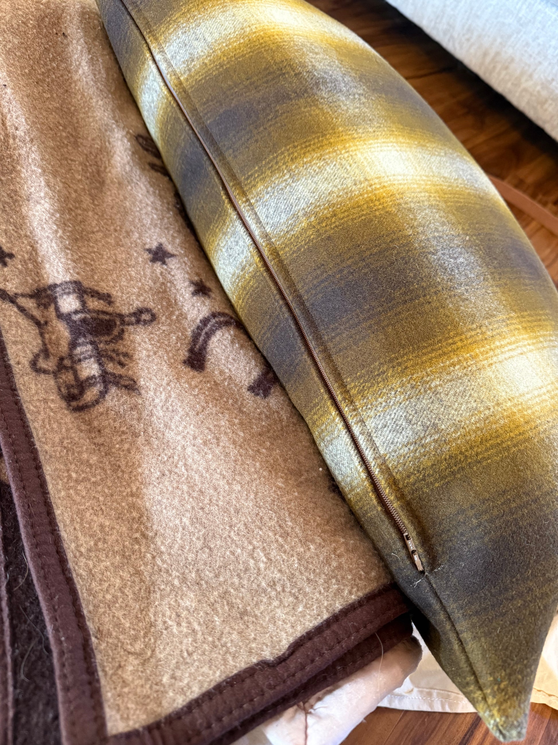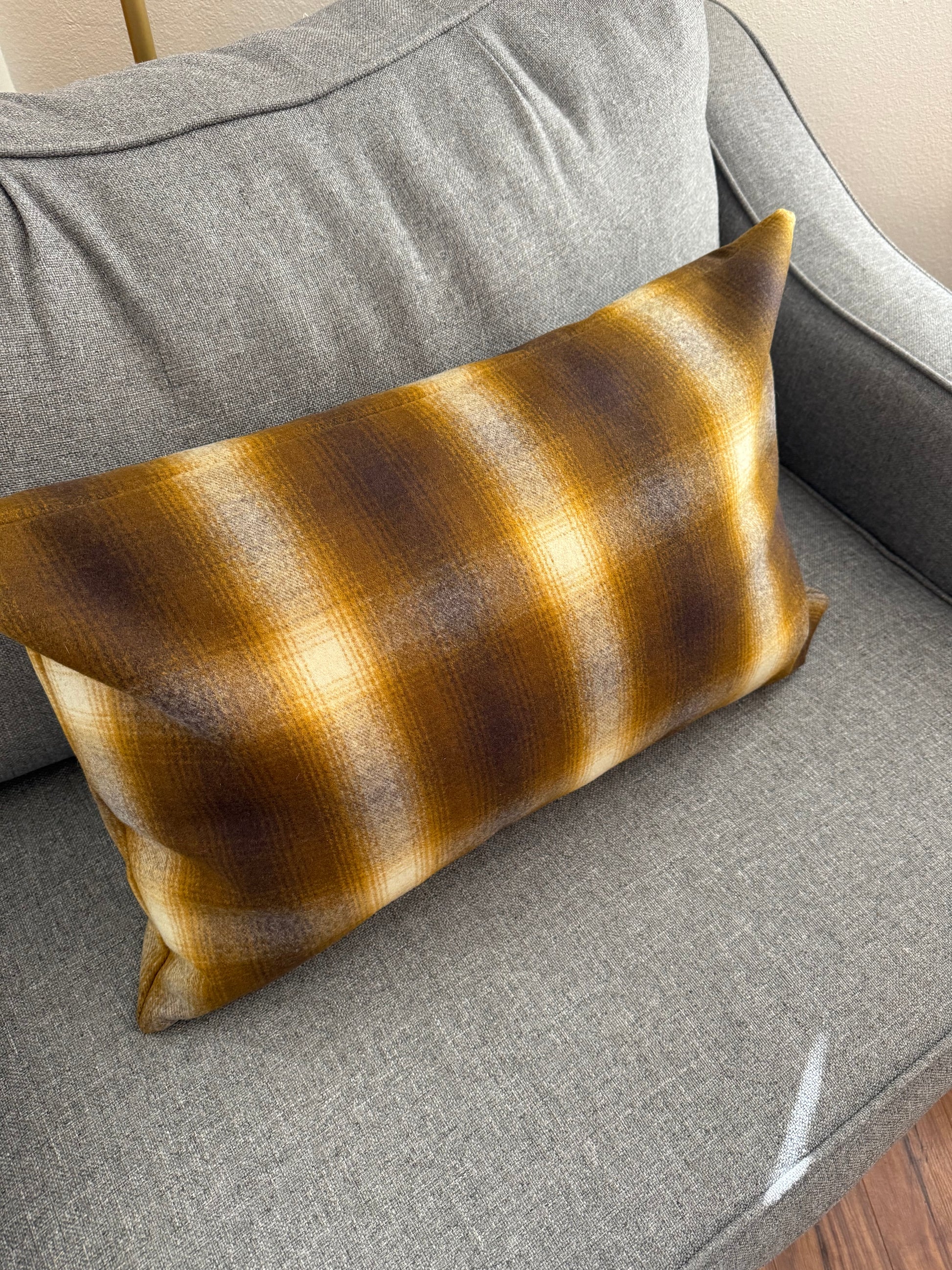 Cowboy Bedroll Pillow Cover made with Brown/Gold Ombré medium weight Pendleton® wool fabric with a YKK zipper. Fits a standard or queen size pillow. Pillow not included.