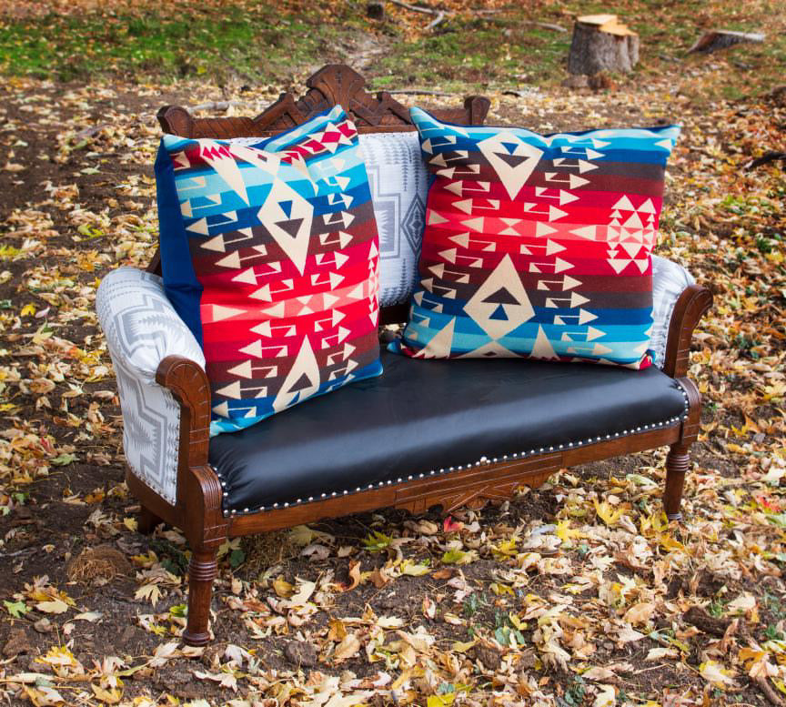 These bold pillows are made with Pendleton® Big Thunder Scarlet fabric and a crisp blue back. Each pillow has a sturdy YKK comes stuffed with 28 x 28 down alternative insert. Price per pillow. Recommend dry clean only.