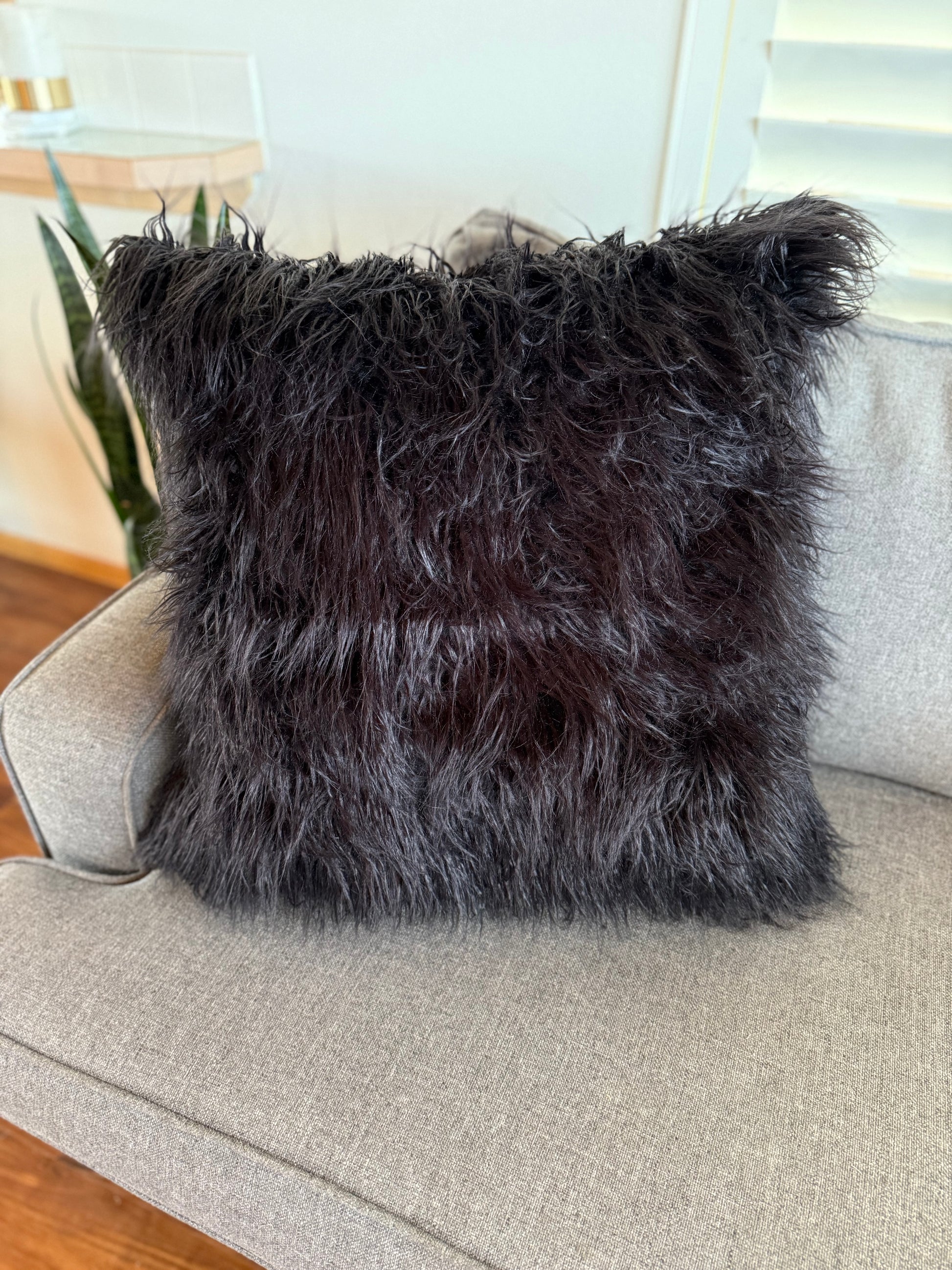 This bold, extra large pillow is made with Rock Point Black Pendleton® fabric and a fluffy faux black. The pillow is stuffed with a 28x28 pillow insert and has a YKK zipper at the bottom.