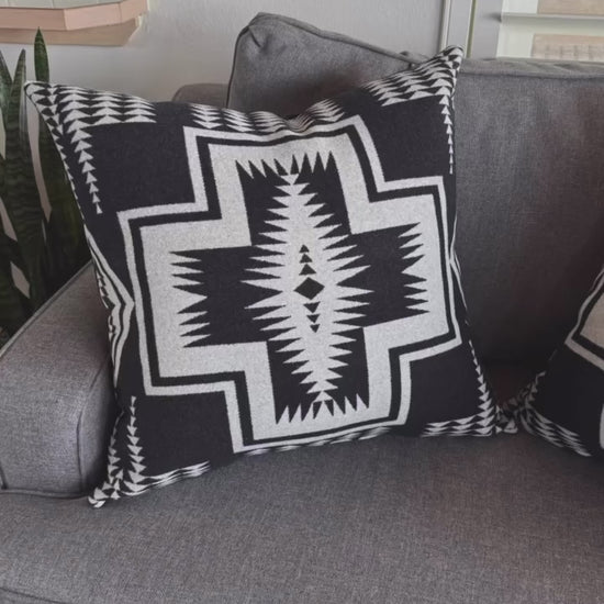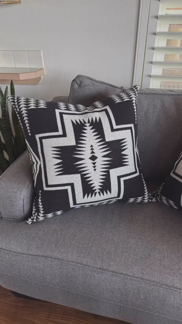 This extra large set of pillows is made with Walking Rock & Eco-Wise Wool Pendleton® fabrics. The pillows are stuffed with 28x28 pillow inserts and have YKK zippers. This bold set would add the perfect spice to your living space!