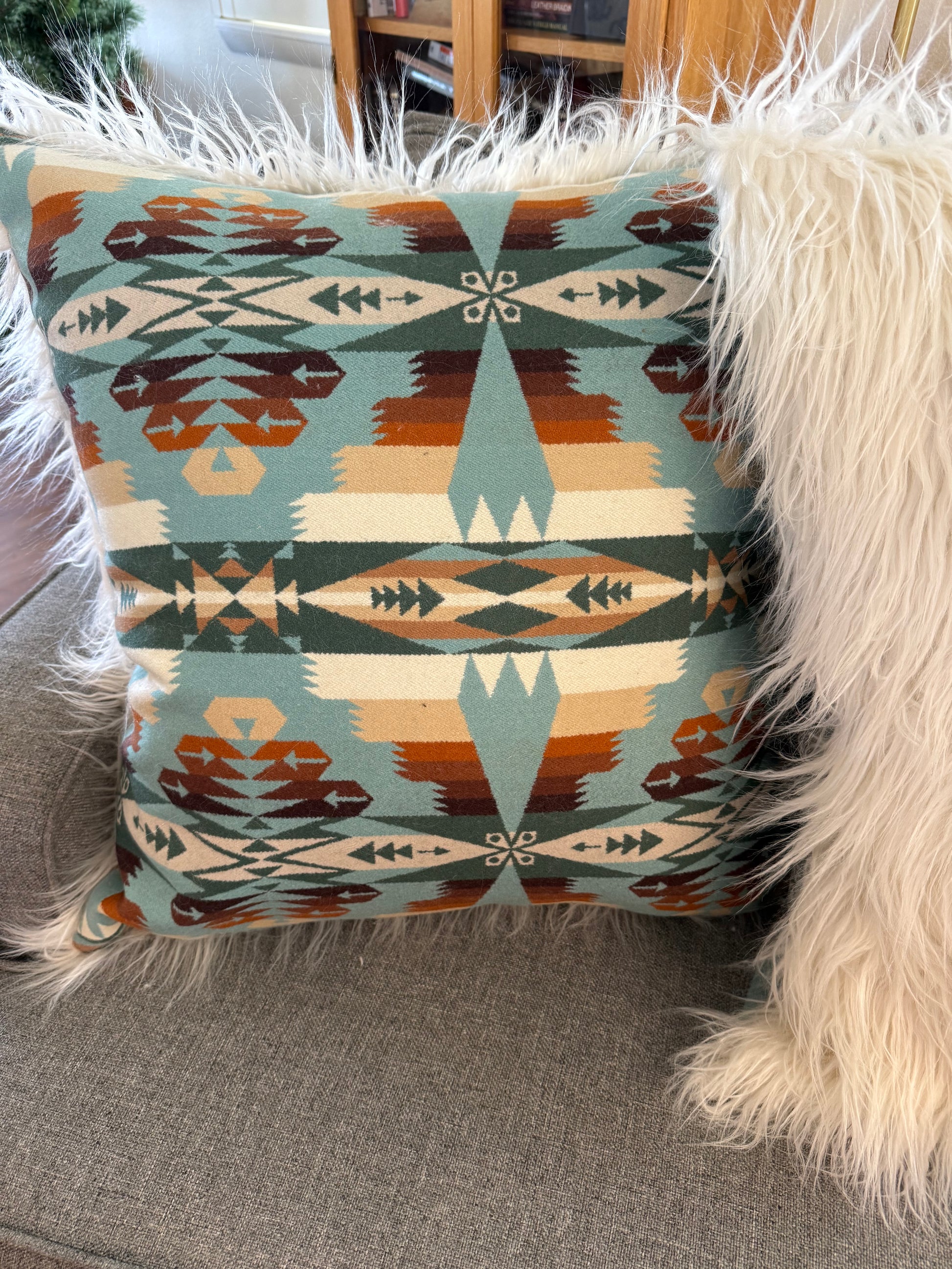 Extra large pillows made with the Tucson Aqua Pendleton® fabric and faux angora. These pillows have YKK zippers and are stuffed with super plush down alternative 28x28 pillow inserts. Price is per pillow. 🚨one left! 🚨