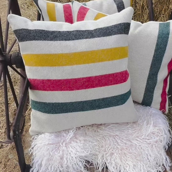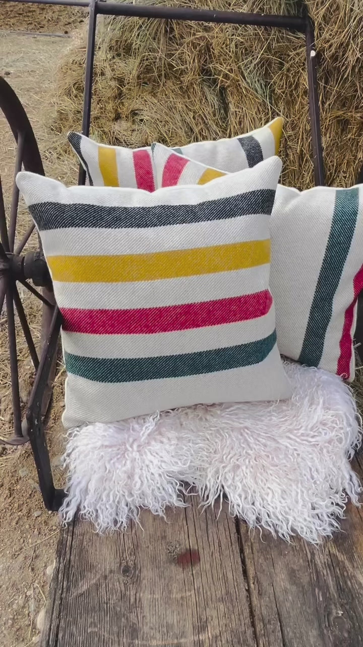 This pillow is the ultimate in cozy comfort! Hand stuffed with American-made shaved memory foam this 21x21 pillow is waiting for you to take a summer time nap! Made with Glacier National Park and Cream Pendleton® fabrics.