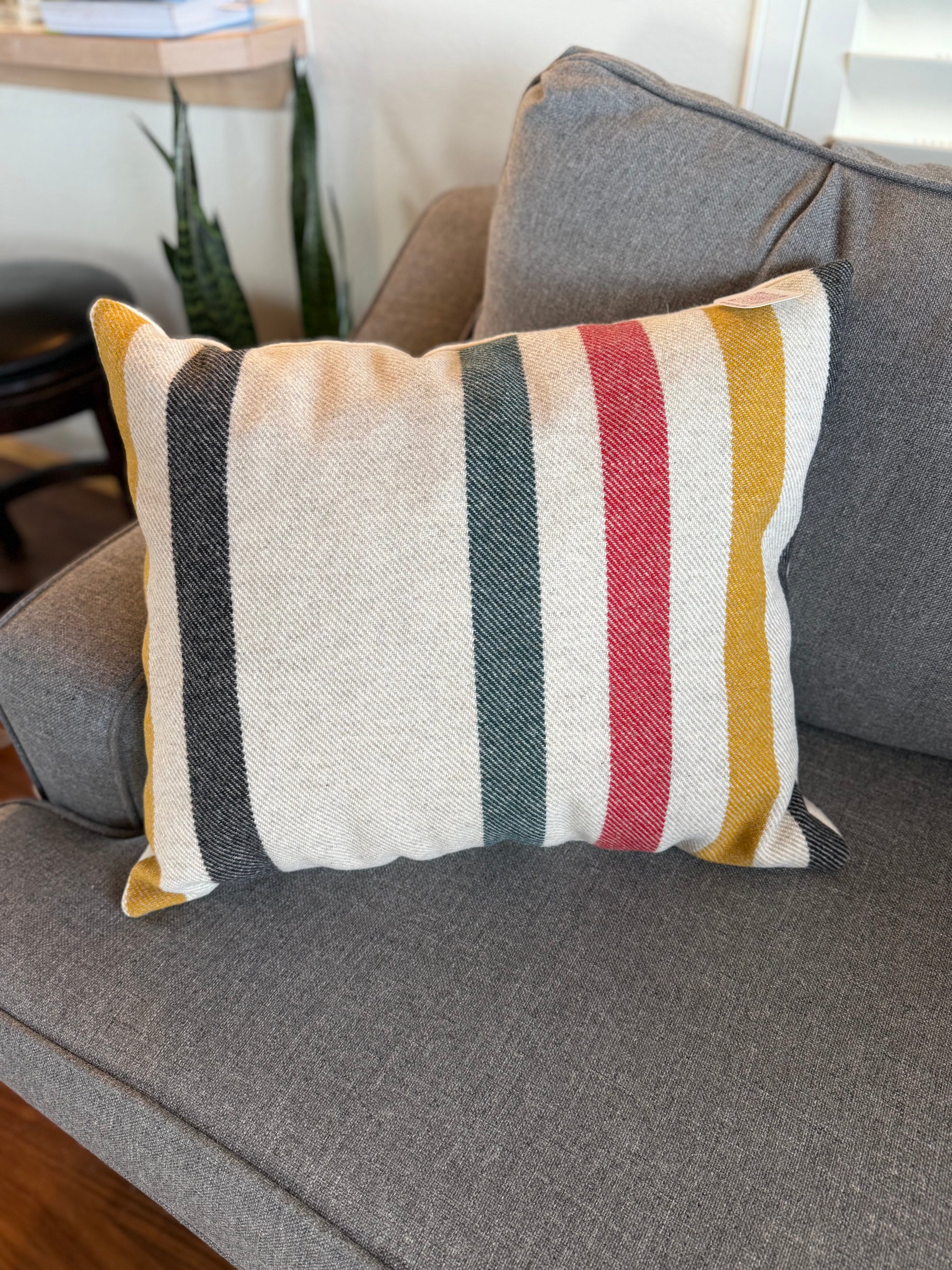 This pillow is the ultimate in cozy comfort! Hand stuffed with American-made shaved memory foam this 21x24 pillow is waiting for you to take a summer time nap! Made with Glacier National Park and Cream Pendleton® fabrics.