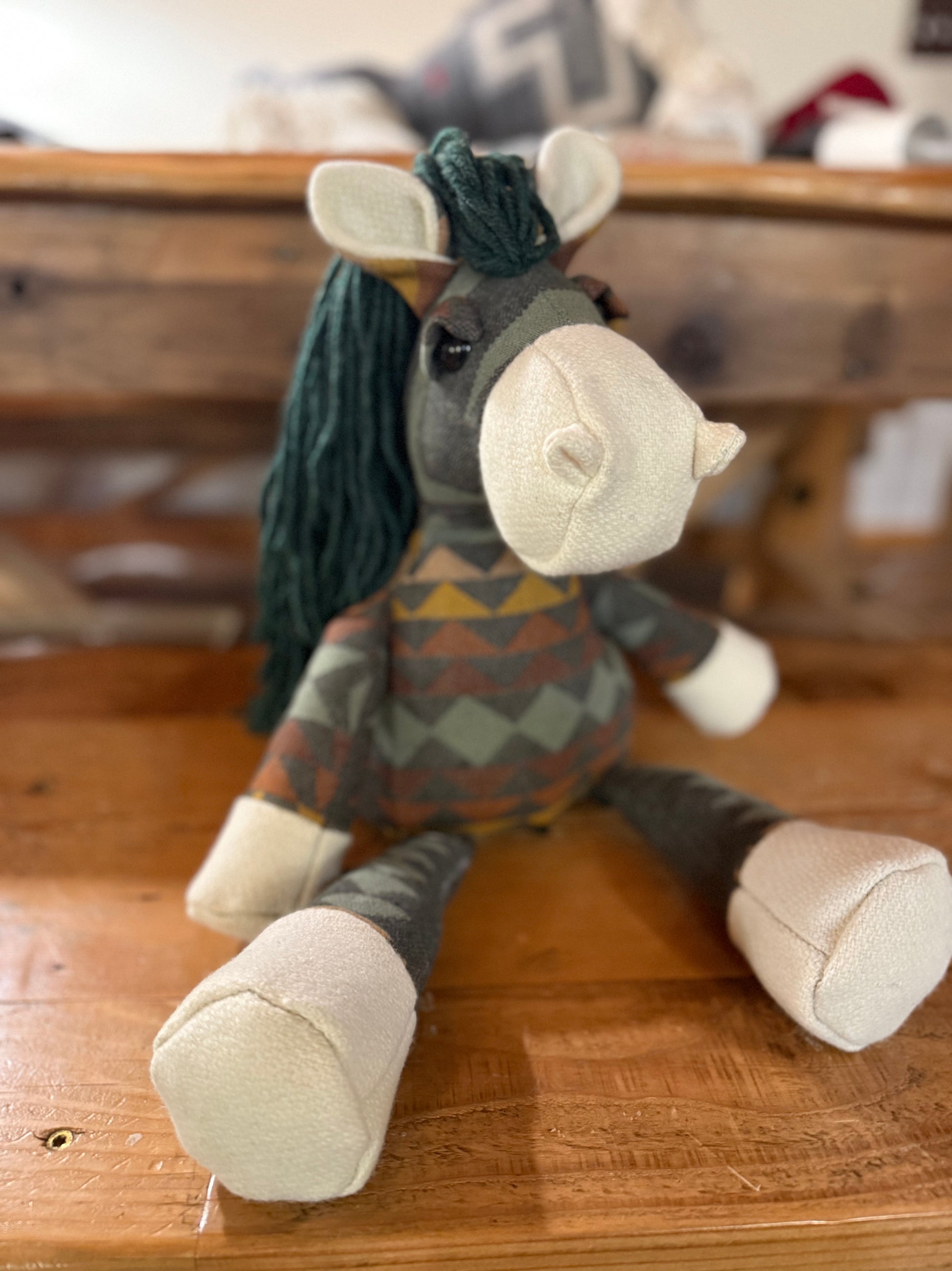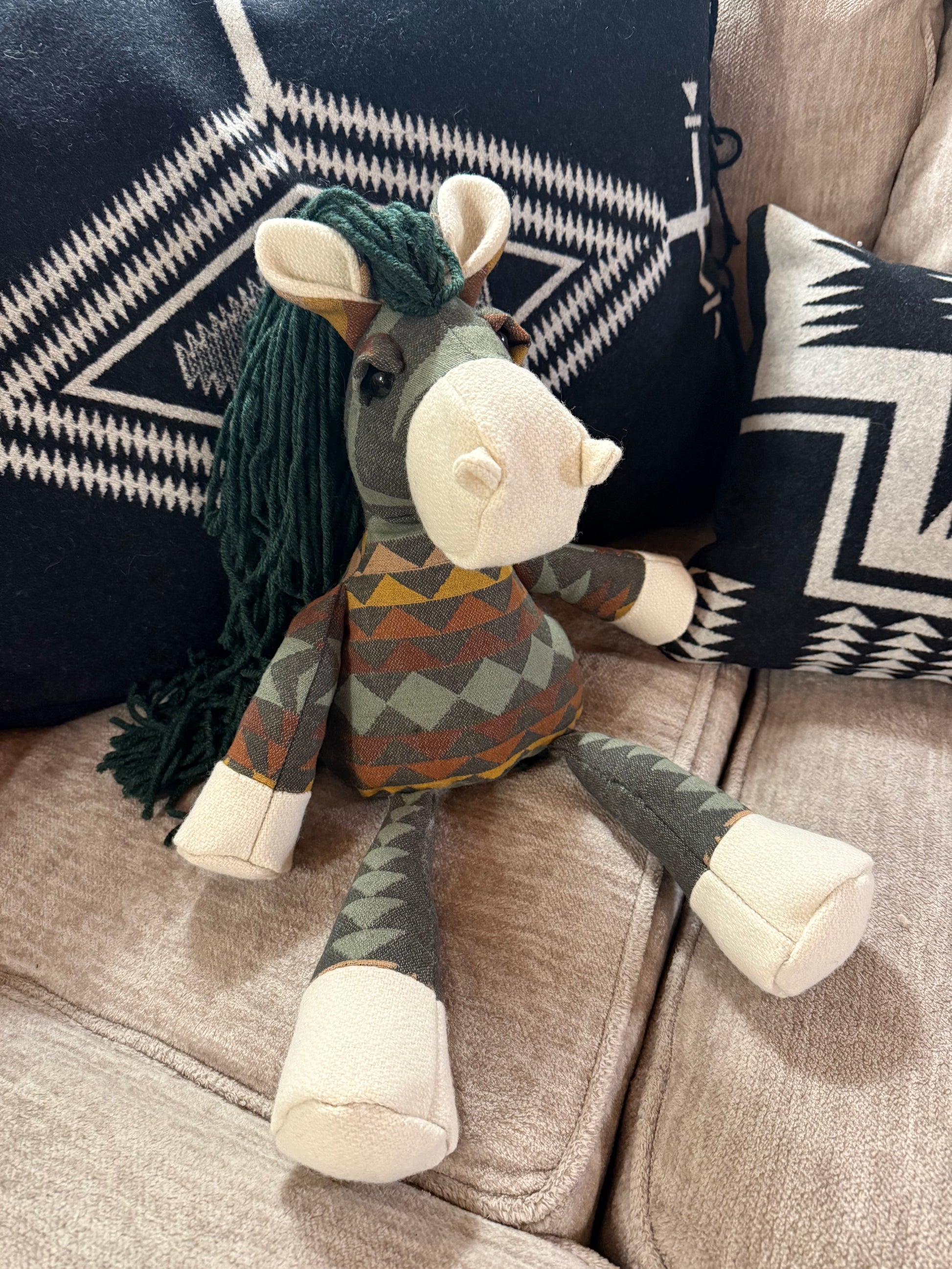 This heirloom quality horse has been carefully crafted, stitch-by-stitch, using Pendleton® fabrics and hand- selected accents. This horse sits about 3 hands high (approx. 12 inches).