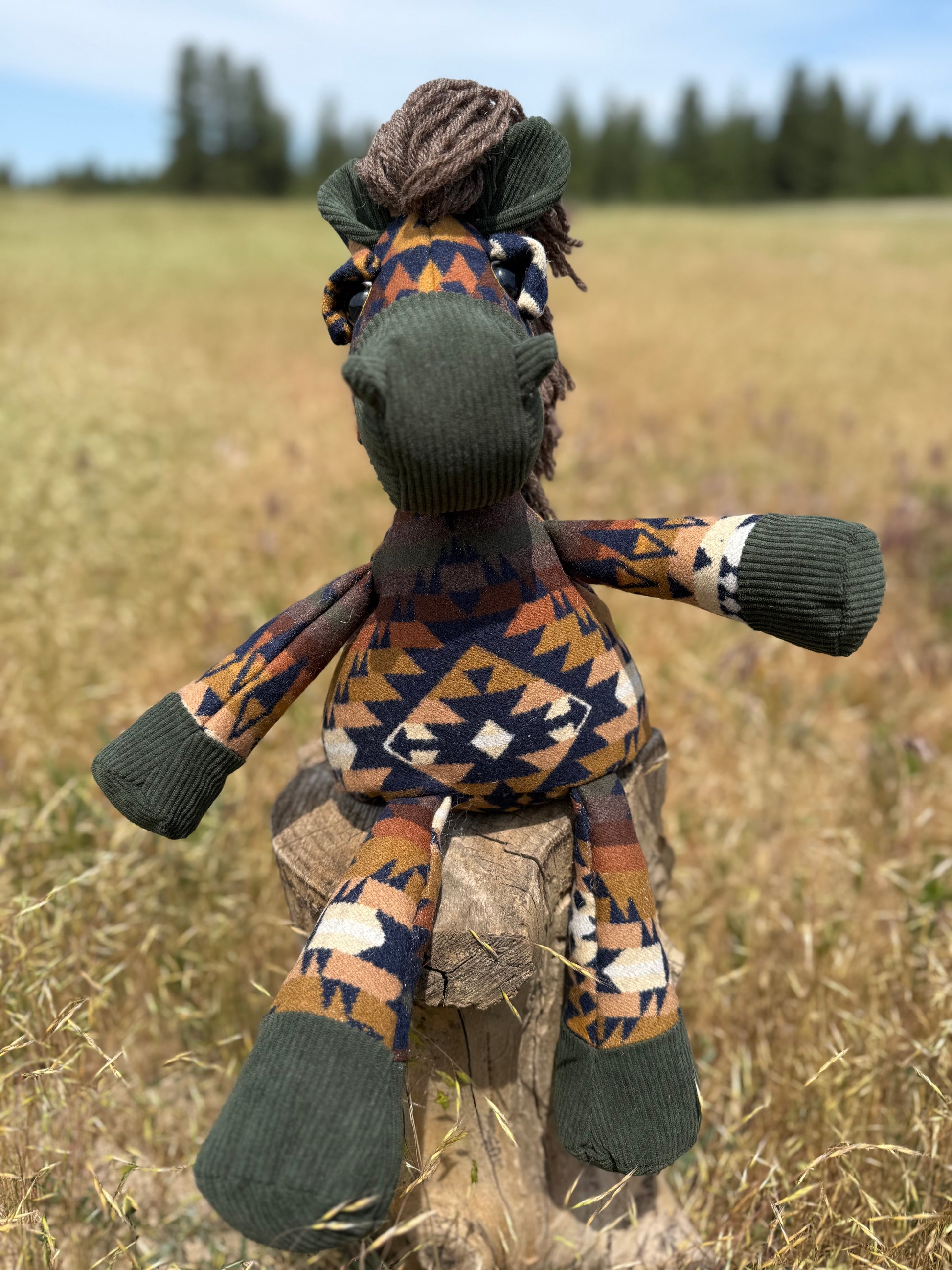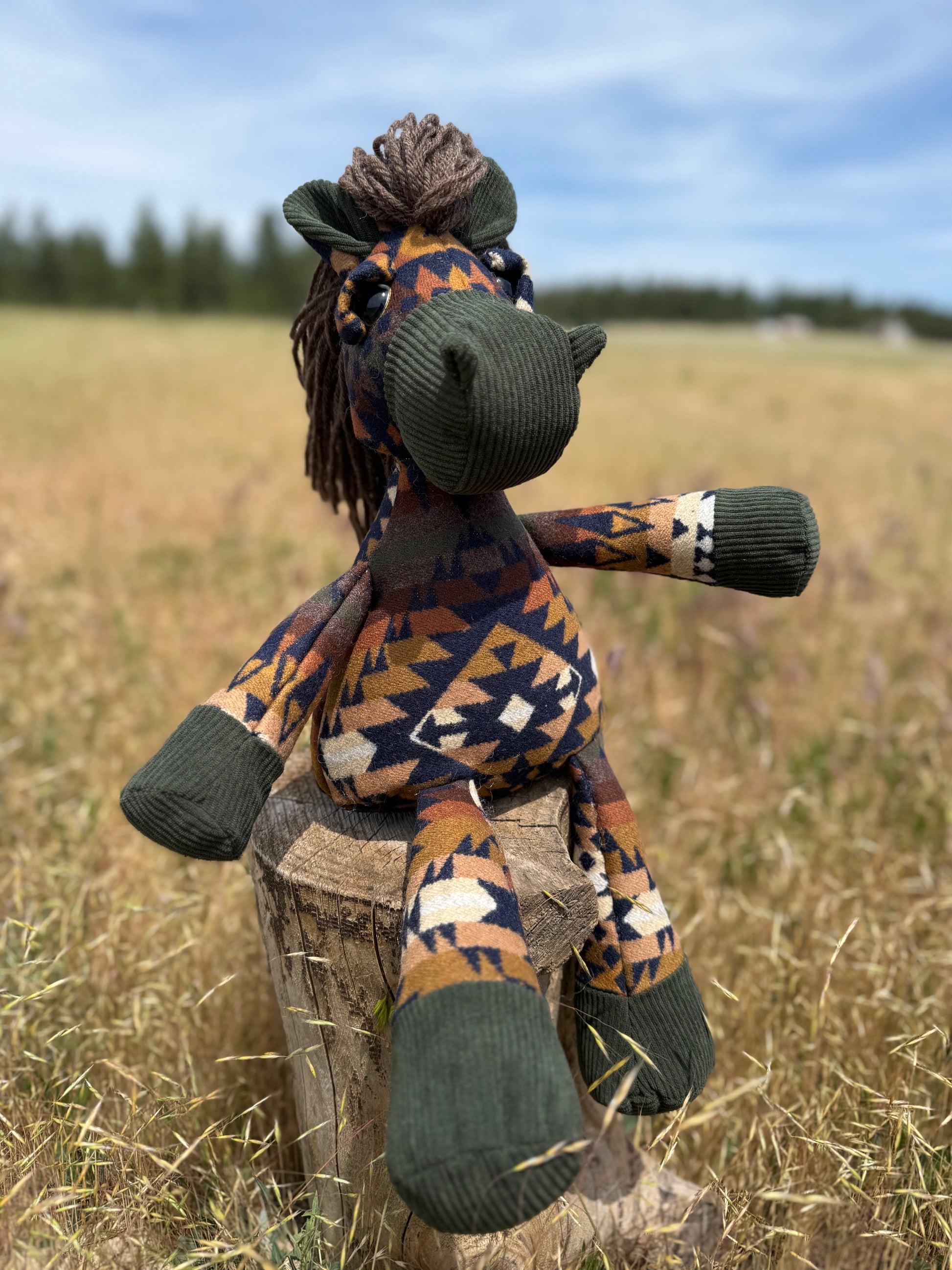 This heirloom quality horse has been carefully crafted, stitch-by-stitch, using Pendleton® fabrics and hand- selected accents. This horse sits about 3 hands high (approx. 12 inches).