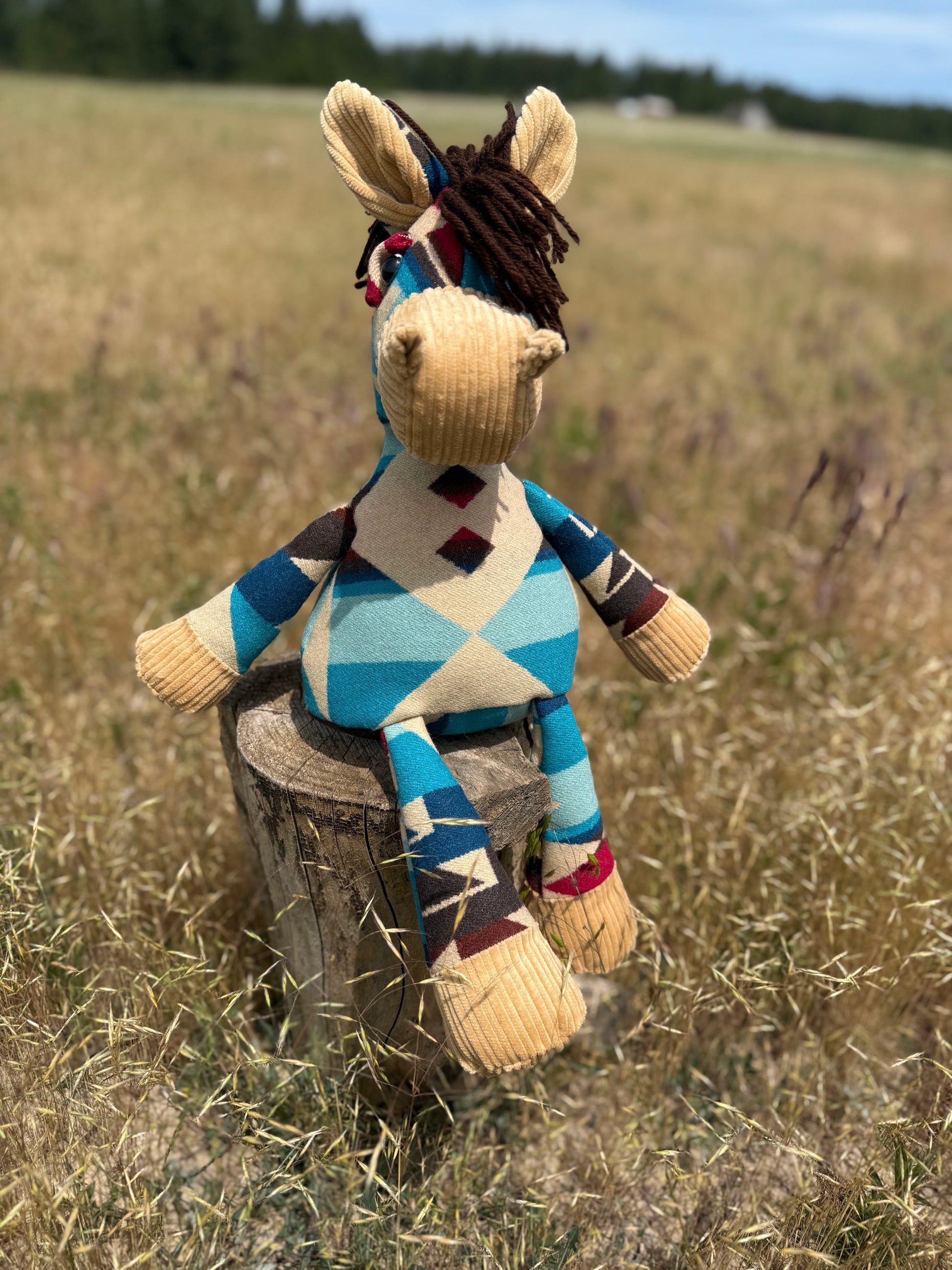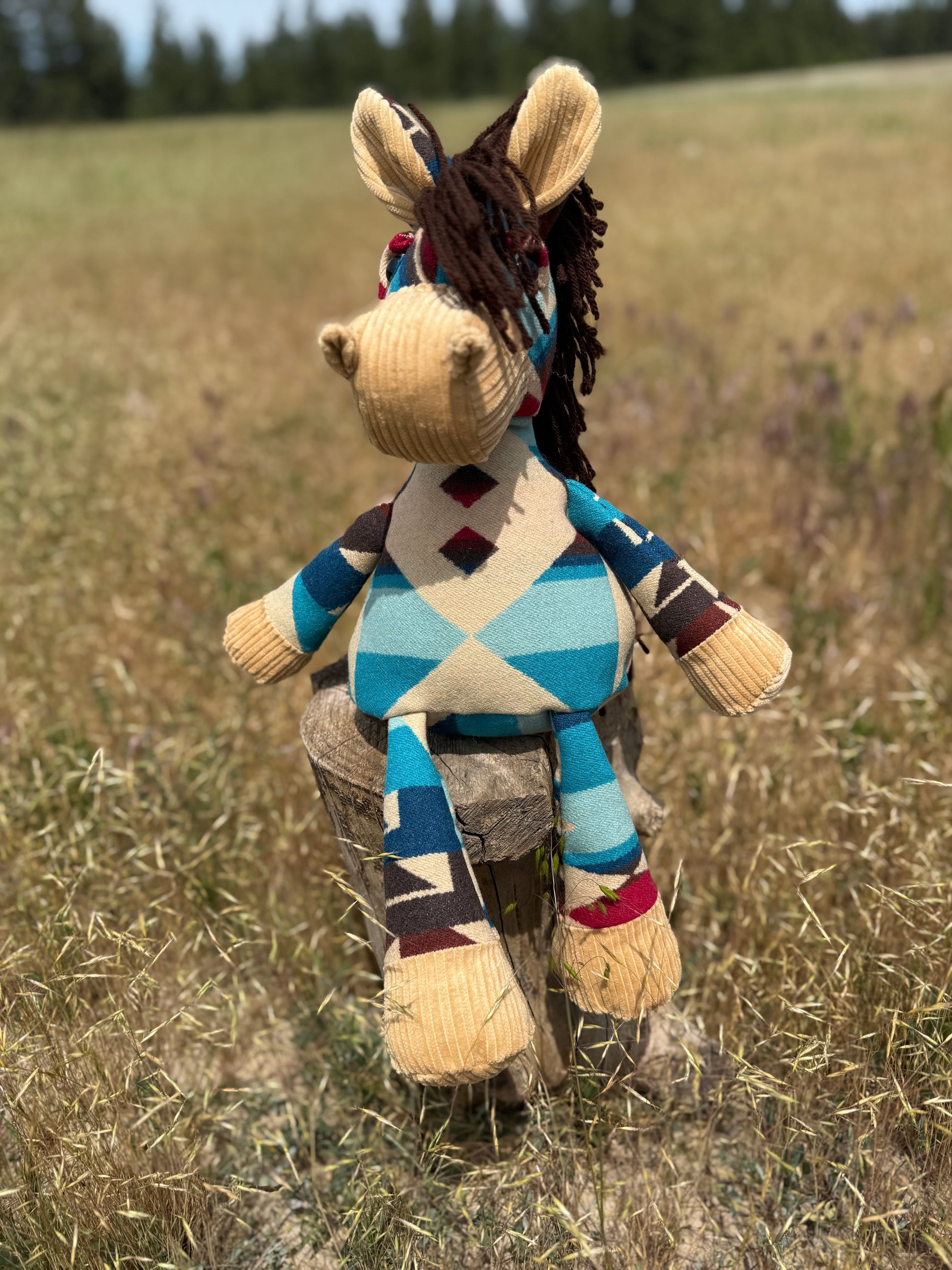 This heirloom quality horse has been carefully crafted, stitch-by-stitch, using Pendleton® fabrics and hand- selected accents. This horse sits about 3 hands high (approx. 12 inches).