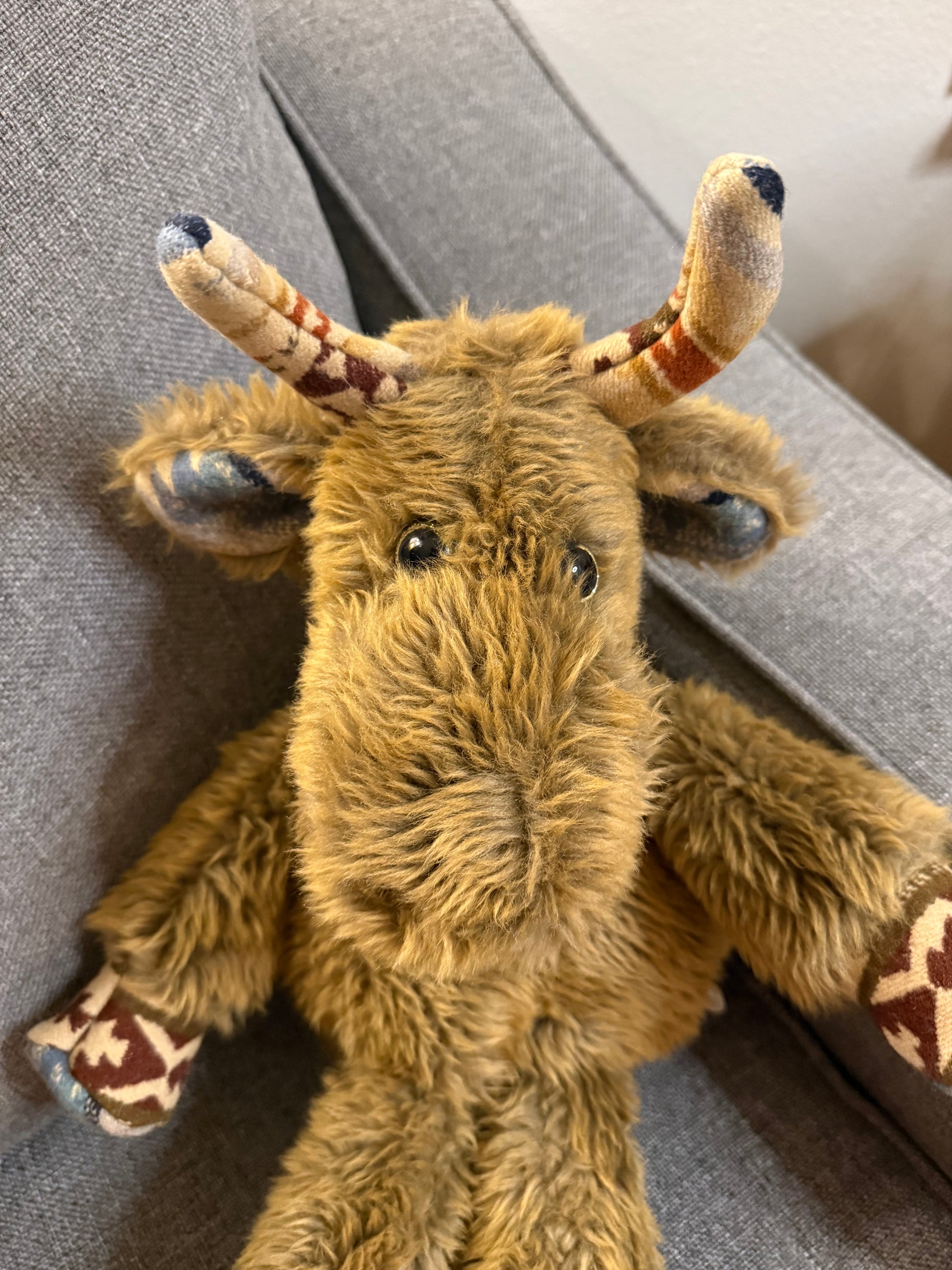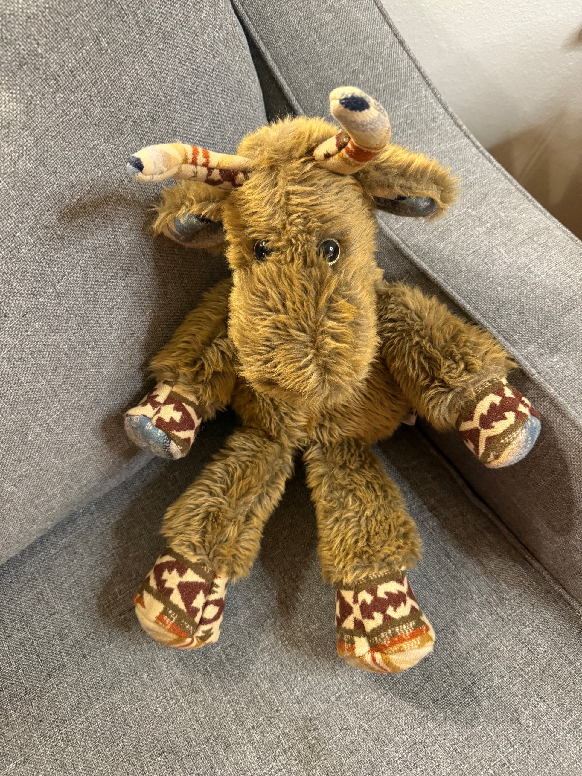 Scotty is an heirloom quality steer, carefully crafted stitch-by-stitch, using faux fur and Shonto Wheatlands Wool Pendleton® fabric.
