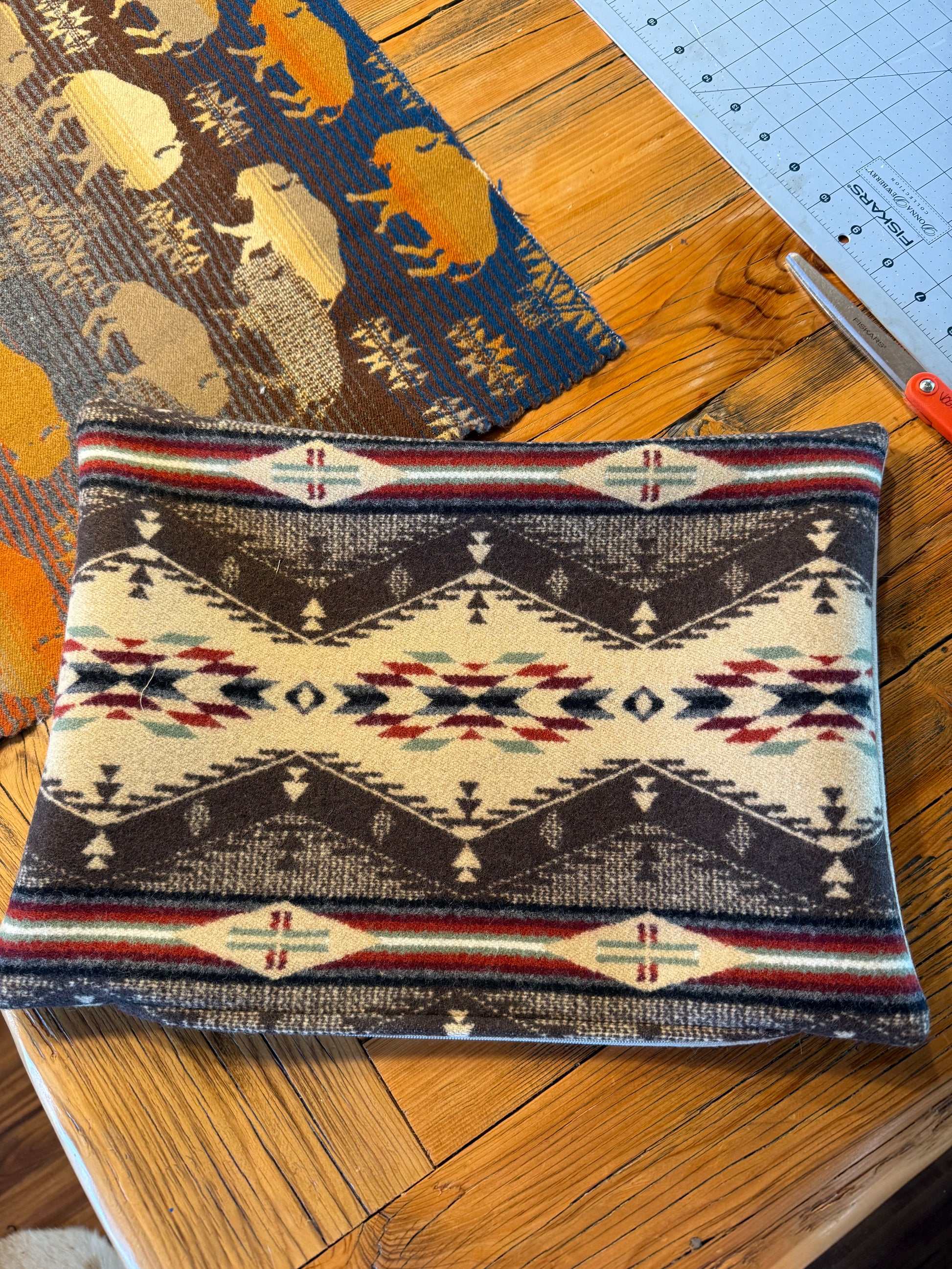 This little pillow is made with Spirit of the People & Buckskin Eco-Wise Wool Pendleton® fabrics. The pillow is stuffed with a 12x22 pillow insert and has a YKK zipper. Cozy up your couch, cabin, or camper with this beautiful pillow!